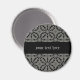 Íman legal com um padrão caleidoscópio de flor gótica medieval em preto e pedra. Tanto o texto como a faixa preta são personalizáveis. Para redimensionar ou alterar a fonte, clique no botão "personalizá-la" e, em seguida, clique no texto ou na faixa para abrir suas opções. Excelente para o seu frigorífico ou bloqueador.