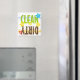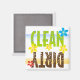 Este imã da lavadora de pratos é ilustração e design de texto digitais. A limpeza está em verde limão limpo e a sujeira está em castanho escuro.
