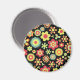 Um design floral atraente com flores estilizadas coloridas sobre fundo preto, o design também tem uma textura sutil de papel.