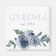 Este ímã personalizado apresenta um tema floral saudável. Um buquê de flores azuis de aquarela é colocado no fundo. O título da vovó é impresso em letra escrita manuscrita com o ano estabelecido.