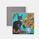 IMÃ FLORES COM GATO PRETO EM TURQUOISMO AZUL