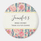 obrigado chá de panela seu ímã com um belo padrão com flores bonito cor-de-rosa sobre um padrão listrado composto por listras azuis e negras. Um quadro retangular com uma borda falsa de folha de ouro colocada sobre cima e seu dentro de texto personalizado.