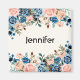 Um ímã com borda de rosas bonito, pintados, azuis e verdes. Colocado sobre um fundo amarelo claro.