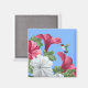 Petúnias vermelhas e brancas com um pássaro-do-mato-roçado e céu azul