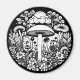Arte retrô com cogumelos de linhagem negra e branca e flores, arte botânica.
