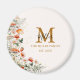 Apresentamos nosso ímã botânico de Flores Florais de Monograma Floresta Cogumelos. Com ilustração em aquarela de cogumelo, morango, flores em fundo quase branco. E texto editável que pode ser personalizado para adicionar um toque único. Adequado como presente de casa nova ou casamento.