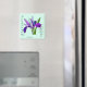 Um brilhante ímã floral de flores pintadas (íris roxa sobre fundo de menta) com verso do Salmo 118:24 Este é o dia que o Senhor fez; vamos nos regozijar e nos alegrar com isso.
