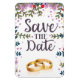 Arte de casamento ou noivado com flores Salve a Data e anéis de noivado.