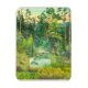 aquarela na seda - equipamento manual; paisagem verão pequeno rio na floresta