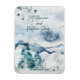 Magneta de cartão de Natal. "Que o Céu e a Natureza cantem" traga a alegria com esta bela floresta de cor d'água e lindos animais com detalhes verdes todos projetados sobre uma clara cor d'água azul de fundo de neve de inverno. Personalize seu nome de família e ano.