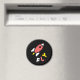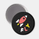 Retro, pop, criação colorida de um Foguete, Redondo Magnet. Tema especial da coloração vermelha, amarela e branca, com ícone simples, mas elegante, chamado arte. Arte digital original pelo Raphael Studio - 'Rocket'. Estilo de pop retroativo, design exclusivo.