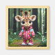 Conheça nosso adorável bebê girafa, vestido com roupas vibrantes e com um padrão lindo, com uma pequena bolsa encantadora pendurada nas costas. Diante de um pincel de uma floresta balbuciana, esse design delicioso captura o espírito da curiosidade e da aventura. Perfeito para adicionar um toque de brincadeira a qualquer espaço. "A Imagem Original foi gerada pelo Meta AI. A IA gerou trabalho de arte. Licenciado sob CC BY-SA 4.0.