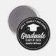 Este moderno favorito personalizado de festa de formatura preto e branco apresenta seu segundo grau ou nome de faculdade para a classe de 2025. Personalize com seu ano de graduação com o script manuscrito em negrito e formando o boné de uma etiqueta de formando personalizada para presentes de classe de mais velho.
