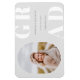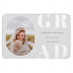 Fotograma arredondada, ímã de anúncio de graduação em classe de mais velho. Cinzas de prata suave, tipo branco e negrito "FORMANDO" e linhas modelo de texto de cinza para o nome do formando, classe do ano e escola.
