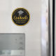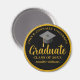 Este sofisticado manejo de ouro e ímã de graduação em preto apresenta uma elegante escrita cursiva sob um boné de formando. Personalize este presente comemorativo de formando de 2025 com a tipografia da serifpografia quic para presentes de mais velho formal. Segundo grau moderno ou suite de festas de formandos.