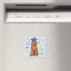 Felicite o seu formando favorito com um presente que apresenta um formando de Poodle Standard giro e feliz vestindo um tabuleiro no meio de um fardo de confete.