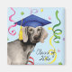 Felicite o seu formando favorito com um presente que apresenta um formando Weimaraner bonito e feliz vestindo um quadro-morteiro em meio a uma pancada de confete.