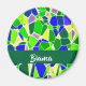 Adicione o seu nome a este padrão verde, amarelo, azul e roxo em formas de pedra.