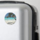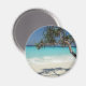 Um ímã com uma bela fotografia ensolarada. Águas turquesas tropicais azuis, com uma praia branca arenosa. Uma árvore tropical solo proporciona um bom lugar para relaxar e desfrutar desse lugar idílico cênico.