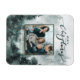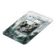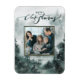 Sua foto de família está na frente e no centro de um quadro verde florestal com uma camada de ouro falso. O fundo deste ímã de Natal mostra uma floresta majestosa de aquarelas de árvores verdes. O topo do cartão tem uma saudação de aquarela que diz "Feliz Natal". Você pode personalizar com seu nome.
