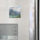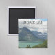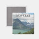 Magneta decorativa e quadrada que mostra uma imagem cênica da paisagem de Montana no Parque Nacional Glacier que inclui os Rockies Nortes e um lago azul colorido e lacrimogêneo. Disponível apenas em forma quadrada.