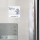 Um ímã de Natal para salvar a data de uma festa de Natal com uma foto fofa de um pequeno boneco de neve. De pé ao ar livre no inverno com neve caindo ao redor. Este pequeno rapaz está vestido com um chapéu de malha azul e cachecol.