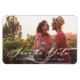 Anuncie sua data de casamento com esta elegante imã salve a data fotográfica. Apresenta uma escrita branca e timística simples. Personalize mudando nomes, casamento, data, local de casamento e foto. A foto salva o anúncio da data será perfeita para qualquer tema e estação do casamento. Disponível como cartão postal, cartão plano e cartão magnético.