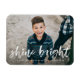 Dê aos seus entes queridos um presente personalizado neste feriado com nossos ímãs fotográficos Shine Bright. O ímã de fotos de feriado exibe sua foto favorita com a frase "Brilho Brilhante" em uma cobertura branca, moderna, escrita à mão. Personalize os ímãs adicionando uma saudação personalizada e seu nome.