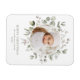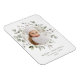 Íman de férias elegante com sua foto rodeada por groselhas de neve com aquarela, folhas de eucalipto e folhagem verde de sábio. Personalize o ímã botânico de fotos de Natal com uma saudação personalizada, seu nome de família e o ano em caracteres verdes seniores.