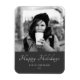 Na moda e moderno ímã de fotos de Natal. O design é em cinzas e esquema de cores negras - com foto, desejo de feriados felizes, sua nota pessoal e um número de ano em roteiro branco. Insira sua foto favorita no modelo - fotos em preto e branco se encaixam muito bem com o design. Personalize este ímã com seu nome e número do ano. É um design excelente para pessoas solteiros, família, casal, ... Perfeito como guardiã de Natal para seu namorado, namorada, família e amigos ou para você mesmo.