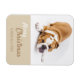 Um magnata fotográfico de Natal personalizável e bonito com um cachorrinho de cachorro-da-escola inglês. Você pode personalizar o ímã com sua foto favorita de estimação ou deixar esta foto. Feliz desejo de Natal está na escrita moderna. Personalize o seu nome e o nome do seu cão. A placa está em bege e branco. presente de Natal excelente para a sua família e amigos.