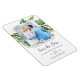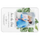 Esta imã salve a data de palma tropical selvagem é perfeita para um casamento de praia ou destino. A design apresenta um conjunto exótico de folhas de palmeiras de banana-d'água verde, samambaias, folhagem, plantas botânicas e verde para uma sensação tropical de verão. Personalize com sua foto de noivado, nomes, data de casamento e endereço do site.