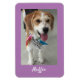 Personalize este ímã com a Foto e o Nome da sua Pet (ou a Foto e o Nome da criança) e desfrute da sua foto todos os dias. Fundo lavanda e texto branco. Vem em várias cores.