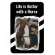 Adicione um pouco de charme ao seu frigorífico ou armário com este ímã flexível de 4" x 6"! Apresentando a frase sincera "A vida é melhor com um cavalo" (mas sinta-se livre para trocar nas suas próprias palavras favoritas), é o presente personalizado perfeito para amantes de cavalos ou qualquer pessoa que queira um momento magnético de alegria. Carregue sua própria foto para torná-la realmente sua. Este ímã personalizado traz personalidade e sorri para onde quer que ele grude. Excelente para casa, escritório ou doação! Branco / Preto