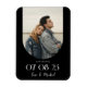 Casamento moderno salve o ímã de data com design chic elegante e estilo minimalista com sua foto em um quadro de arco.