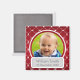 Imã Foto Do Bebê Com Nome E Data Quatrefoil Vermelho
