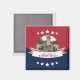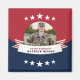 Honre seu oficial com este ímã quadrado azul e branco patriótico de 2" x 2" com fotografia em círculo centrada no solteiro, uma faixa de estrelas e listras com uma borda falsa e espaços reservados para o nome e a posição de seu serviço especial. presentes de excelente para pais e avós colocarem na geladeira! Disponível em outros tipos e tamanhos.