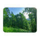 Fotografia de Paisagem Florestal. Paisagem verde pacífica da floresta em junho com vegetação verde, árvores verdes e luz do sol matinal.
