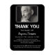 Dê a sua família e amigos este favor personalizado de funeral de fotos para agradecê-los por todo seu amor e apoio. Apresentando um fundo preto clássico, uma foto do seu ente querido, um brilho externo em volta da foto, e um obrigado que você envia com o nome e as datas de seus entes queridos. Todo texto e imagens podem ser editados facilmente e personalizados alterando o modelo que já existe.