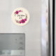 Um ímã com o texto: Melhor Mãe Nunca. Projetado com papoilas cor-de-rosa bonito fuchsia e presilhas decorativas e folhas numa coroa circular floral. Bonito e elegante e criado com aquarelas.