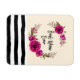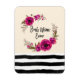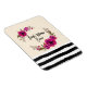 Um ímã flexível com o texto: Melhor Mãe Nunca. Projetado com papoilas cor-de-rosa bonito fuchsia e presilhas decorativas e folhas numa coroa circular floral. Padrão listrado preto no fundo. Bonito e elegante e criado com aquarelas.