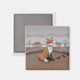 Colourful artwork of a fox in the English countryside, with old timber-framed houses in the background. Perfect for anyone who loves folk art.