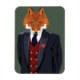Esta design apresenta um retrato muito elegante de uma raposa vestindo um terno e gravata.