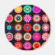 um padrão constituído por pequenos mandalas redondas caleidoscópicas coloridas, cada mandala é diferente.