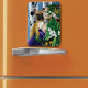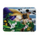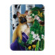 Um Dryad segurando um buldogue francês numa floresta de pássaros