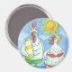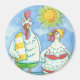 Galinhas Divertidas No Sol. ROOSTER & HEN MAGNET Round *Personalize Susan Brack