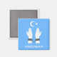 Este trabalho de arte apresenta as mãos acorrentadas e a frase #FREEUYGHUR.