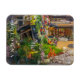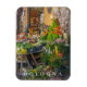 Uma fotografia colorida de um compro de frutas e vegetais na cidade de Bolonha, em Itália, impressa numa imã de geladeira de souvenir.