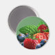 Morangos, framboesas, mirtilos com várias cores de fundo