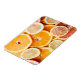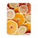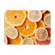 Apresentando vários tipos de frutas maduras frescas, já fatiadas e prontas para comer. Inclui laranjas, toranjas e limões.